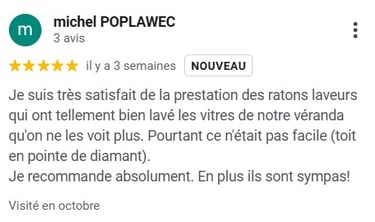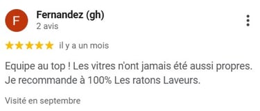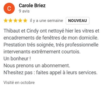 " Equipe au top ! Les vitres n'ont jamais été aussi propres. Je recommande à 100% ! "